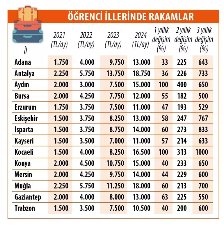 Hürriyet’in aktardığına göre, İstanbul’un öğrenciler tarafından tercih edilen 9 ilçesinde, en uygun ortalama fiyat 20 bin TL ile Avcılar’da bulunuyor. Ankara ve İzmir’de de benzer durumlar gözlenirken, özellikle prestijli üniversitelerin bulunduğu Ankara’nın Bahçelievler, Beşevler gibi semtlerinde kira fiyatları yükseliyor. İzmir’de ise öğrencilerin tercih ettiği ilçelerde son bir yılda kira artışı yüzde 90’ı geçmiş durumda.