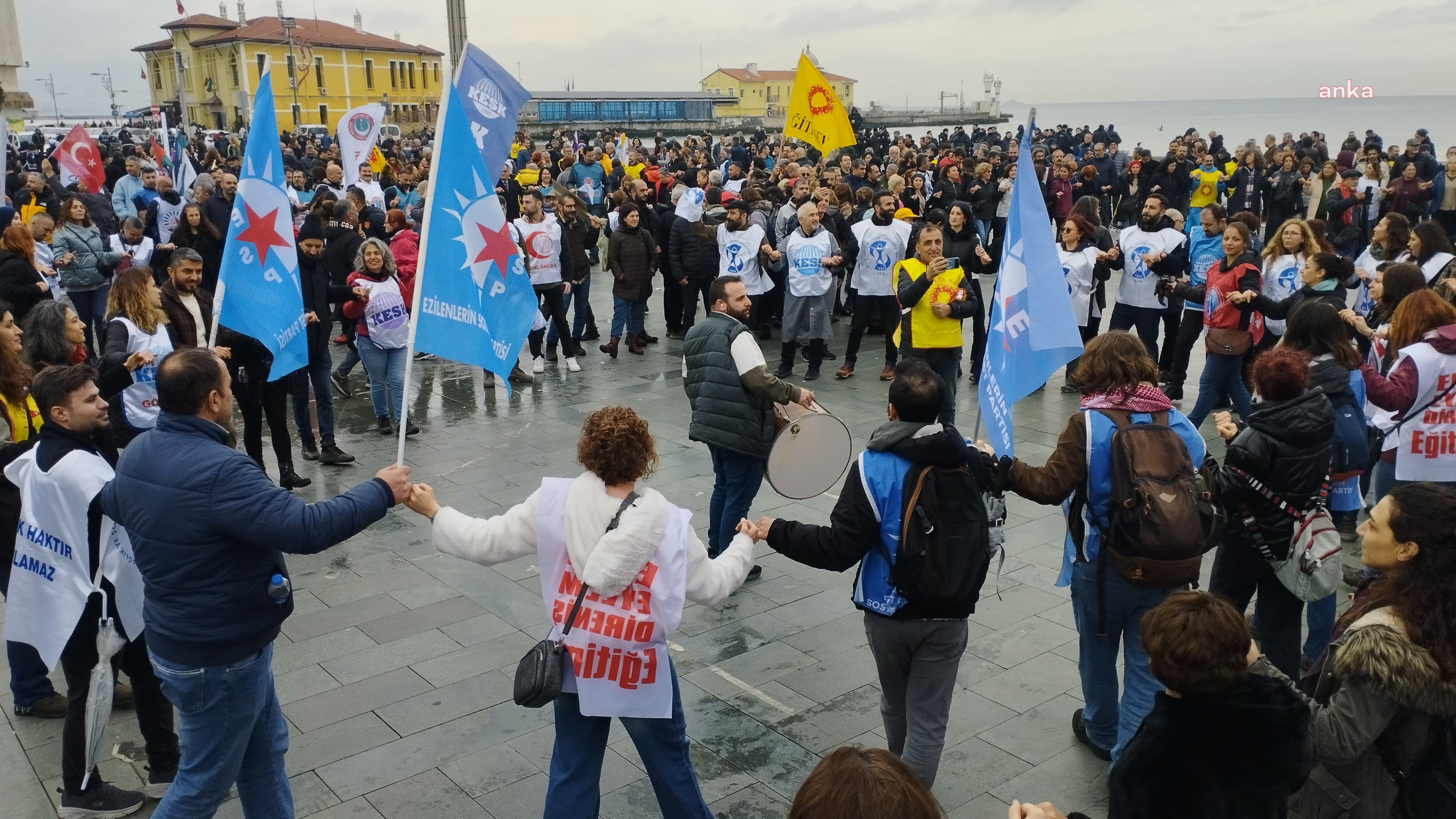 Memur ve memur emeklilerine 2025 yılı için yüzde 11,54 zam verilmesine karşı kamu çalışanları, bugün bir günlük iş bırakma eylemi yaptı. İzmir Cumhuriyet Meydanı’nı dolduran binlerce kamu emekçisi, iktidara genel grev uyarısında bulundu.