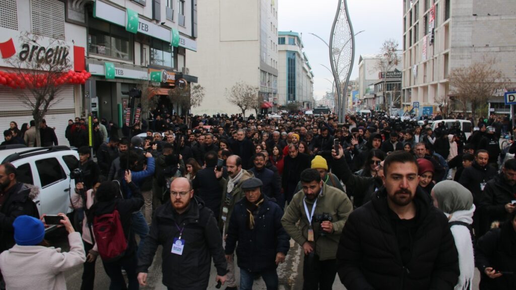 Wan’da eşgenel başkanların katılımıyla yapılan yürüyüşün ardından binlerce kişi sloganlarla Cumhuriyet Caddesi’nden DEM Parti il binasına kadar yürüdü.