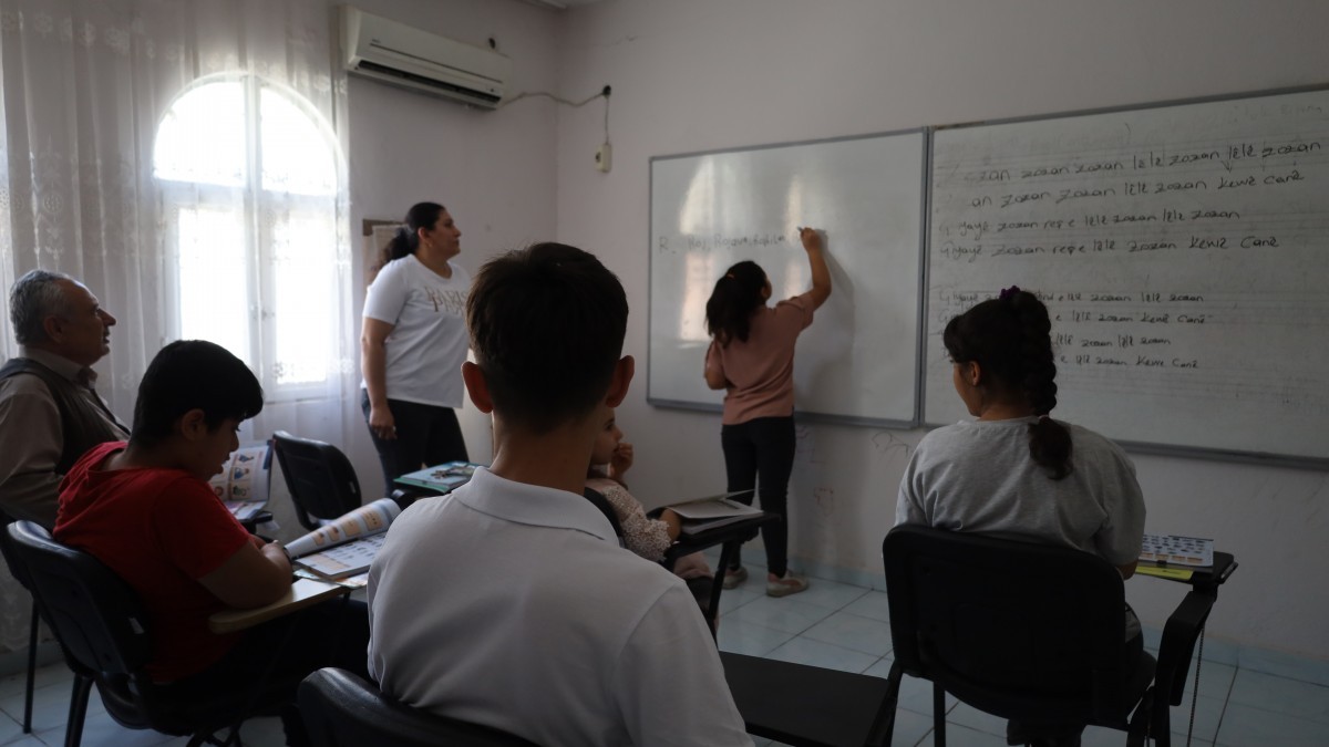 ŞIRNEX – Cizîr’de Birca Belek Dil ve Kültür Derneği’nin açtığı kursta, çocuklar; anne ve babalarıyla aynı sıralarda anadillerini öğrenmek için dirsek çürütüyor.