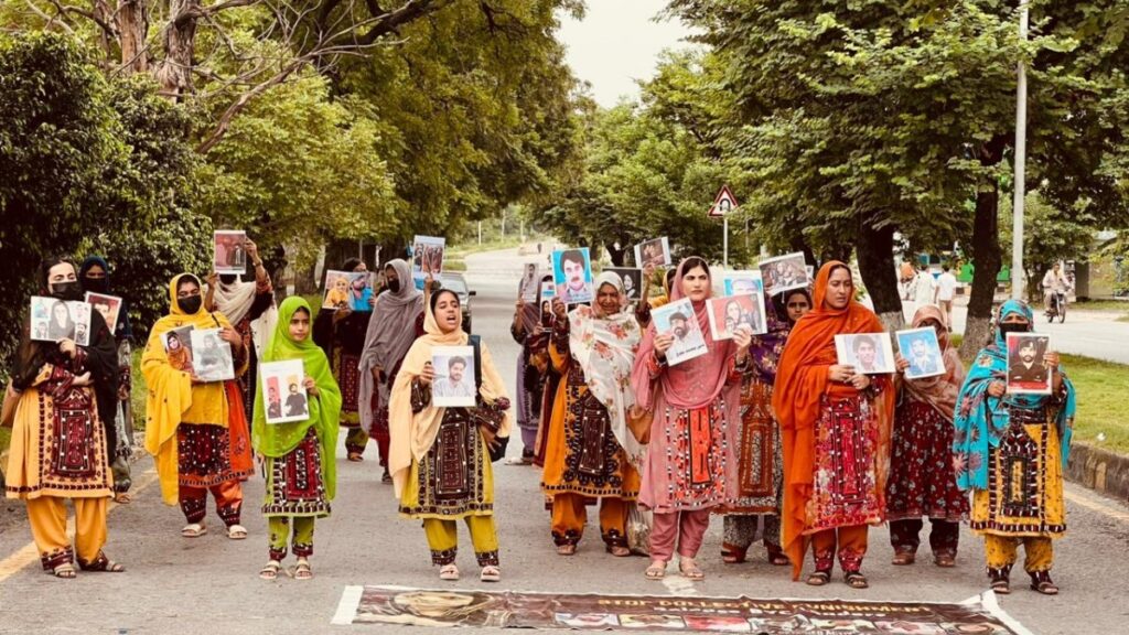 Beluc kadınların Pakistan devletinin Beluclara yönelik zorla kaybettirmeler, aktivistlerin ve Beluc Yakceti Komitesi (BYC) liderlerinin tutuklanmasına yönelik başlattıkları oturma eylemi 24’üncü gününde. İslamabad Basın Kulübü’ne kadar yürüyen kadınlar yürüyüş boyunca Beluc aktivistlerin, kaybettirilenlerin posterlerini taşıdı. Beluc aktivistlerin fotoğraflarının yer aldığı pankartta “Toplumsal baskıya son ver. BYC liderlerini serbest bırakın” yazısı yer aldı.