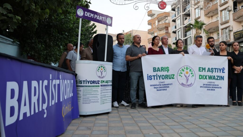 Halkların Eşitlik ve Demokrasi Partisi (DEM Parti) Şirnex İl Örgütü, Kürt meselesinin barışçıl ve demokratik yöntemlerle çözülmesi amacıyla imza kampanyasının startını Cizîr (Cizre) ilçesinde verdi. “Barış istiyoruz çünkü” şiarıyla başlatılan kampanya kapsamında Sanat Sokağı’nda basın açıklaması yapıldı. Açıklamaya, Şirnex Barış Anneleri Meclisi üyeleri, siyasi parti, demokratik kitle örgütlerinin temsilcileri ve çok sayıda kişi katıldı.