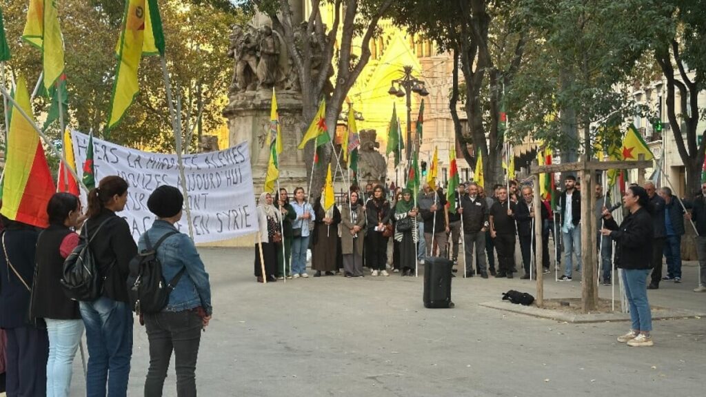 Fransa’nın Marsilya kentinde, basın açıklaması düzenlendi. Marsilya Canebière Meydanı’nda bir araya gelen Kürtler ve Fransız dostları, son günlerde yoğunlaşan saldırılara tepki gösterdi. Eylem boyunca “Bijî berxwedana Rojava”, “Bijî Serok Apo”, “Jin jiyan azadî” ve “Şehîd namirin” sloganları atıldı.