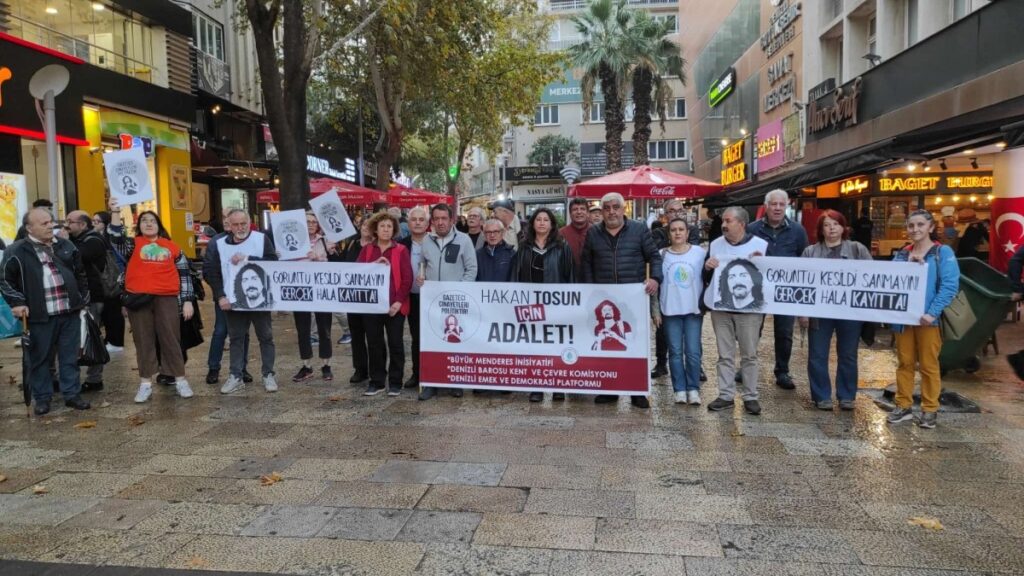 Denizli Emek ve Demokrasi Platformu, Büyük Menderes İnisiyatifi ve Denizli Barosu Kent ve Çevre Komisyonu da basın açıklaması gerçekleştirdi. “Görüntü kesildi sanmayın gerçek hala kayıtta”, “Hakan Tosun için adalet” pankartlarının taşındığı açıklamada, “Hakan’ın hesabı sorulacak”, “Özgür basın susturulamaz” sloganları atıldı. Açıklamayı kitle adına Yağmur Yalçın gerçekleştirdi.
