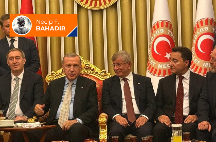Zaten bir süredir o fotoğraf zihnimin içinde dönüp duruyor. Meclis’in açıldığı günün akşamı Erdoğan resepsiyon katılan parti liderlerini kanatlarının altında gösteren o kareye siyasi anlam yüklenmeli mi? Üzerinden kaç gün geçti, hâlâ siyasetin gündeminde. Ben Ahmet Davutoğlu’nun da Ali Babacan’ın da Erdoğan’la çay sohbeti yapmasını yadırgamıyorum, bir itirazım da yok. Ve fakat Davutoğlu’nun ‘çocuklar gibi şen hali’ garipti elbette.