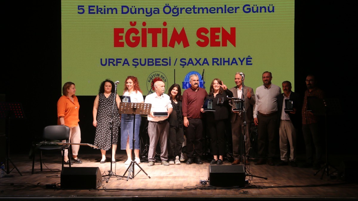 Eğitim ve Bilim Emekçileri Sendikası (Eğitim Sen) Riha Şubesi, 5 Ekim Dünya Öğretmenler Günü’nü Urfa City AVM’de bulunan konferans salonunda düzenlediği etkinlikle kutladı. Özgürlük ve demokrasi mücadelesinde hayatını kaybedenler için bir dakikalık saygı duruşunun ardından Eğitim Sen Riha Şubesi Eşbaşkanı Özlem Ulutaş Şengül, eğitim emekçilerinin tüm zorluklara rağmen yürüttüğü hak mücadelesine dikkat çekti.