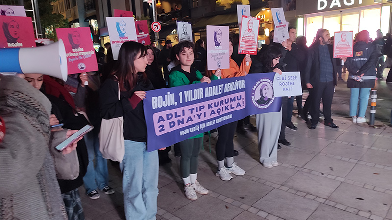 Van’da geçen yıl şüpheli şekilde ölü bulunan üniversite öğrencisi Rojin Kabaiş’in vücudunda 2 erkeğe ait DNA izlerinin bulunduğunun ortaya çıkmasının ardından Kadıköy’de eylem yapıldı. Ortak açıklamada, “Gizlenmek istenen nedir? Hangi ilişkiler, hangi ihmaller açığa çıkmasın diye Rojin için adaletin sağlanmasının önüne bu kadar engel çıkarılıyor? Bugün Rojin’in davası, bize şüpheli kadın ölümlerinin nasıl görünmez kılındığını bir kez daha hatırlatıyor” denildi.