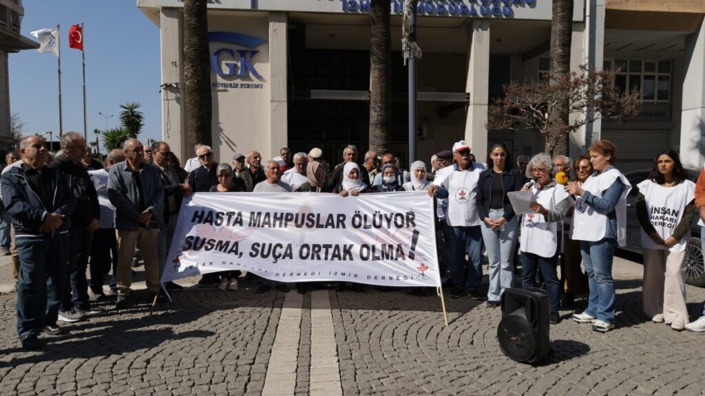 İHD İzmir Şubesi, hasta tutsakların durumuna dikkat çekmek amacıyla Konak Eski Sümerbank önünde basın açıklaması düzenledi. Açıklamada “Hasta mahpuslar ölüyor. Susma, suça ortak olma” pankartı açıldı.