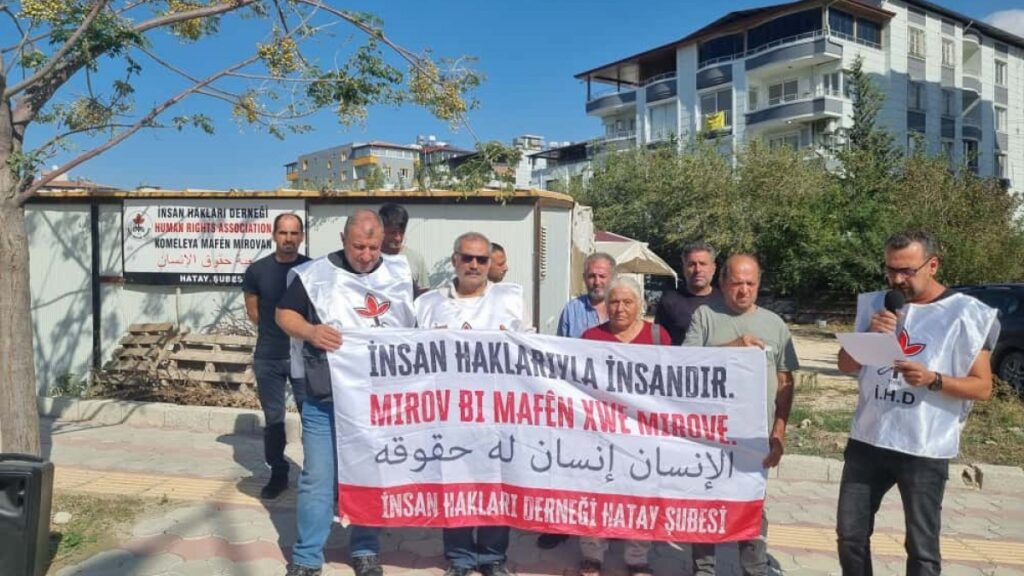 İnsan Hakları Derneği (İHD) Hatay Şubesi, “kuyu tipi” olarak bilinen yüksek güvenlikli cezaevlerine dair dernek binalarının önünde açıklama yaptı.