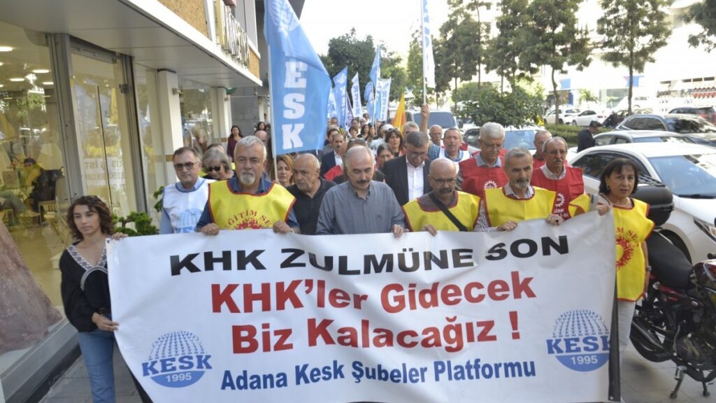 Adana’da, 29 Ekim 2016 tarihinde yayımlanan 675 sayılı Kanun Hükmünde Kararname (KHK) ile ihraç edilen kamu emekçileri ihraçların 9’uncu yıldönümü dolayısıyla açıklama yaptı. Kamu Emekçileri Sendikaları Konfederasyonu (KESK) Adana Şubeler Platformu’nun çağrısıyla Eğitim ve Bilim Emekçileri Sendikası (Eğitim Sen) önünde bir araya gelen emekçiler, buradan Celalettin Sayhan İlkokulu önüne yürüyüş gerçekleştirdi.