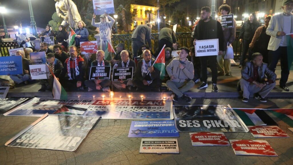 Eskişehir Filistin ile Dayanışma Platformu, Sumud Vicdan Filosu’nun İsrail’in müdahale sahası ilan ettiği bölgeye girmesi sebebiyle Sumud Filosu’na destek amacıyla Köprübaşı’nda mumlar yakarak oturma eylemi yaptı. “Yaşasın küresel intifada” ve “Limanlar Siyonizme kapatılsın” dövizlerinin taşındığı, “Katil İsrail işbirlikçi AKP” ve “Yaşasın halkların kardeşliği” sloganlarının atıldığı oturma eylemi sonrası platform üyesi Levent Baştürk açıklama yaptı.