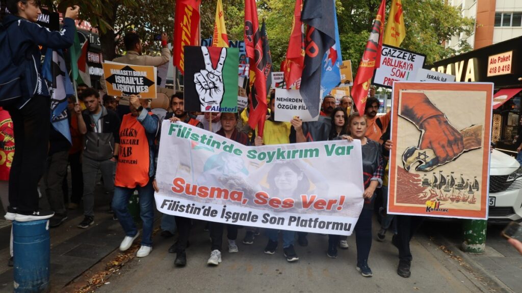 AMED/ANKARA – İsrail’in Gazze’ye yönelik saldırılarının protesto edildiği açıklamalarda, iktidara, “Gün somut adımlar atma, Netanyahu hükümeti ile diplomatik, ticari ve askeri ilişkileri derhal keserek Filistin halkının yanında olma günüdür” çağrısı yapıldı.