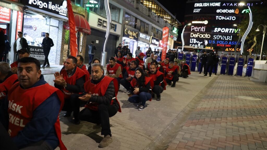 Türkiye Devrimci İşçi Sendikaları Konfederasyonu (DİSK) ve DİSK Genel-İş Wan Şubesi öncülüğünde “İşimizi geri istiyoruz” sloganıyla başlatılan eylem, Sanat Sokağı’nda devam etti. “223 işçinin haksız ve hukuksuzca işten çıkarılması kabul edilemez” pankartı açan işçiler, “Bijî berxwedana kedkaran”, “İşçiler burada, hırsız kayyım nerede?” ve “Hak, hukuk, adalet” sloganları attı.