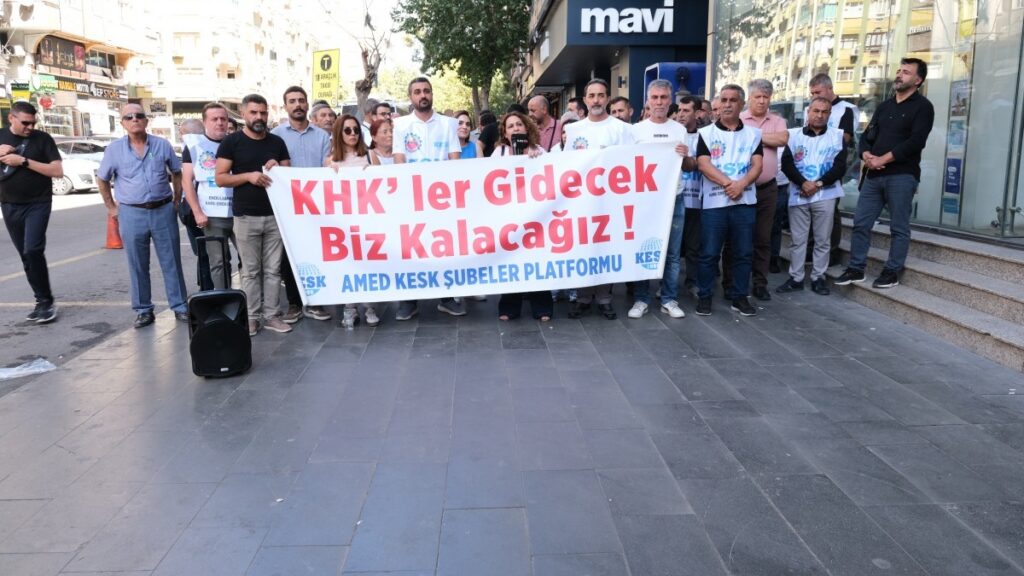Kamu Emekçileri Sendikaları Konfederasyonu (KESK) Amed Şubeler Platformu “KHK’ler gidecek, biz kalacağız” eyleminin 141’incisini gerçekleştirdi. Yenişehir ilçesi Ofis Semti’nde bulunan AZC Plaza önünde gerçekleştirilen eylemde “KHK’ler gidecek biz kalacağız” yazılı pankart açıldı.