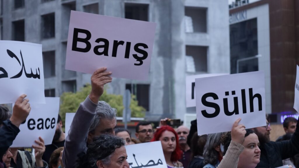 Karşıyaka Emek ve Demokrasi Platformu, “Barış için buluşuyoruz” şiarıyla İzmir’de Karşıyaka İzban önünde basın açıklaması gerçekleştirdi. Yürüyüş yapmak isteyen kitleye ırkçı grubun saldırı tehdidi üzerine, açıklama polis ablukasında gerçekleşti. “Dağlar, insanlar ve hatta ölüm bile yorulduysa şimdi en güzel şiir barıştır” pankartının açıldığı açıklamada çok dilde “Barış” dövizleri taşındı. Sık sık “Bijî aşitî, yaşasın barış”, “Faşizme karşı omuz omuza”, “Savaşa hayır barış hemen şimdi”, “Demokratik toplum, demokratik çözüm” sloganlarının atıldığı açıklamaya DEM Parti il ve ilçe örgütlerinin yanı sıra çok sayıda STK temsilcisi ve yurttaş katıldı.