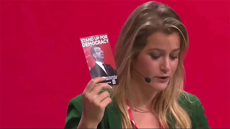 Bölgeler Komitesi’nin PES Grubu, Ekrem İmamoğlu’nu; cesareti, özgürlükleri, dayanışmayı ve eşitliği savunan yerel liderlere verilen Paweł Adamowicz Ödülü’ne aday göstermiş, birçok grup da İmamoğlu’na desteğini açıklamıştı. Karacsony’nin konuşmasının ardından panelin moderatörlüğünü yapan Avrupa Parlamentosu’ndan Celine Hervieu, İmamoğlu’nun adaylı kampanyası için hazırlanan broşürünü havaya kaldırarak PES delegasyonun adaylığa desteği için kürsüden çağrı yaptı.