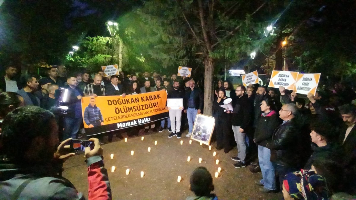Ankara’nın Mamak ilçesindeki yurttaşlar, 23 Ekim 2023 tarihinde ilçede uyuşturucu satışına engel olduğu için uyuşturucu satıcıları tarafından silahla vurularak öldürülen Doğukan Kabak’ı anmak için bir araya geldi. “Doğukan Kabak ölümsüzdür, çetelerden hesabı halk soracak” pankartı açılan açıklamada, yurttaşlar Kabak’ın öldürüldüğü yere mumlar bıraktı.