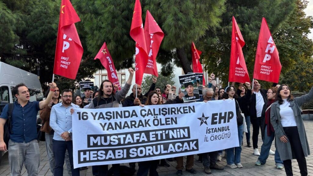 Emekçi Hareket Partisi (EHP) İstanbul İl Örgütü, Tekirdağ’da bir tuğla fabrikasında ısınmak için yaktığı ateşin patlaması sonucu yaşamını yitiren 16 yaşındaki çocuk işçi Mustafa Eti için Fatih’te bulunan İstanbul İl Milli Eğitim Müdürlüğü önünde basın açıklaması gerçekleştirdi. Eylemde “16 yaşında çalışırken yanarak ölen Mustafa Eti’nin hesabı sorulacak” yazılı pankart açıldı.