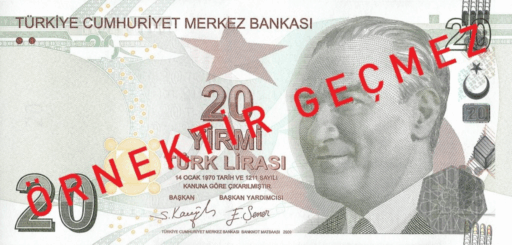 Merkez Bankası (MB) 20 liralık banknotlar (E9 Emisyon Grubu 7’inci Tertip) için tedavüle çıkarılması duyurusu yayınladı.