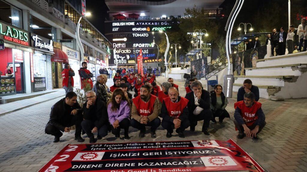 Konuşmalar ardından eylem, 5 dakikalık oturma eylemiyle devam etti. Eylemin 100’üncü gününe destek çağrısında bulunan emekçilerin eylemi slogan ve alkışlarla son buldu.
