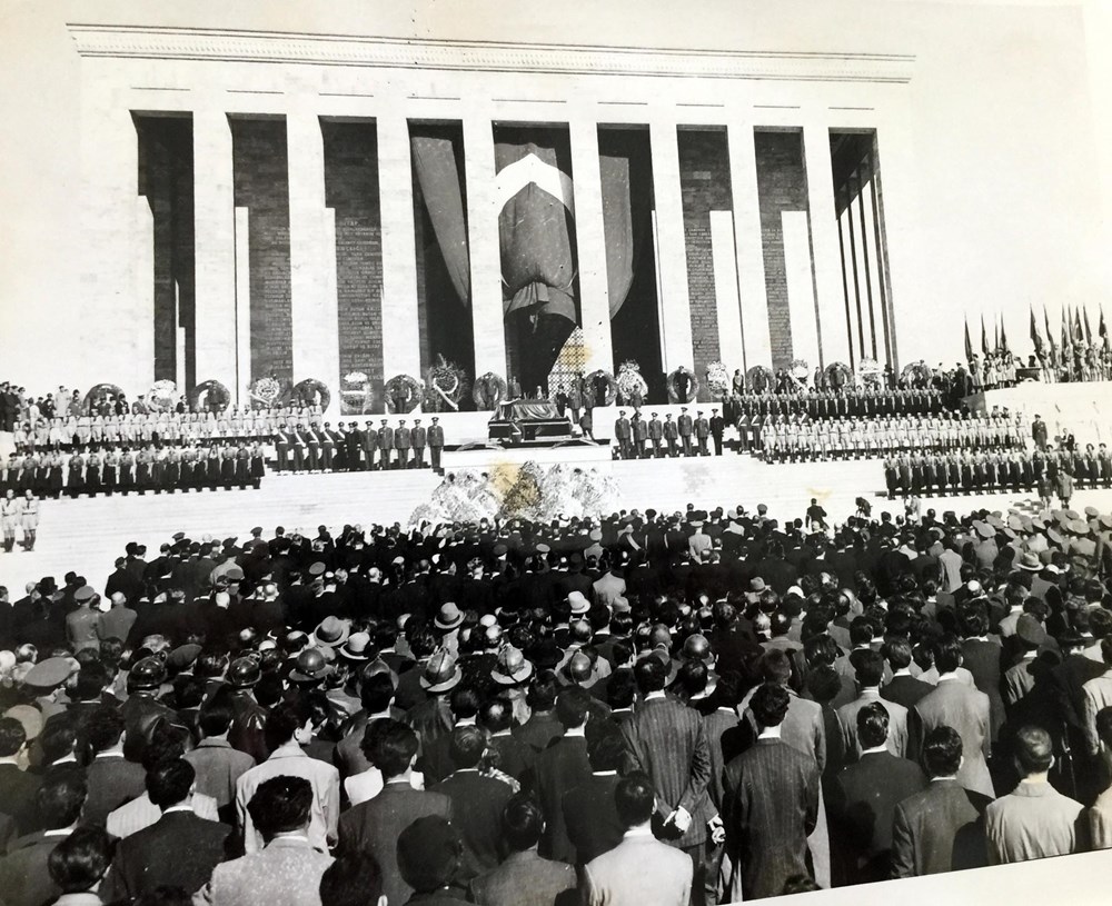 10 Kasım 1953 Salı günü 09.05’te saygı duruşu ile başlayan Anıtkabir’e nakil törenine Atatürk’ün kız kardeşi Makbule Atadan, dönemin Cumhurbaşkanı Celal Bayar, İsmet İnönü, devlet erkanı ve onbinlerce kişi katıldı. Kortej; Opera, Ulus, TBMM, Gar, Anadolu (Tandoğan) Meydanı güzergâhını takiben Anıtkabir’e ulaştı. Atatürk’ün naaşı, Anıtkabir’deki kabrine İslami kurallara göre dualar ile defnedildi. Türkiye’deki illerin yanı sıra Selanik’teki doğduğu evin bahçesinden, Kore’deki Türk şehitliğinden, Suriye’deki Süleyman Şah’ın Türbesinden ve Kıbrıs’tan getirilen topraklar harmanlanarak kabrine konuldu.