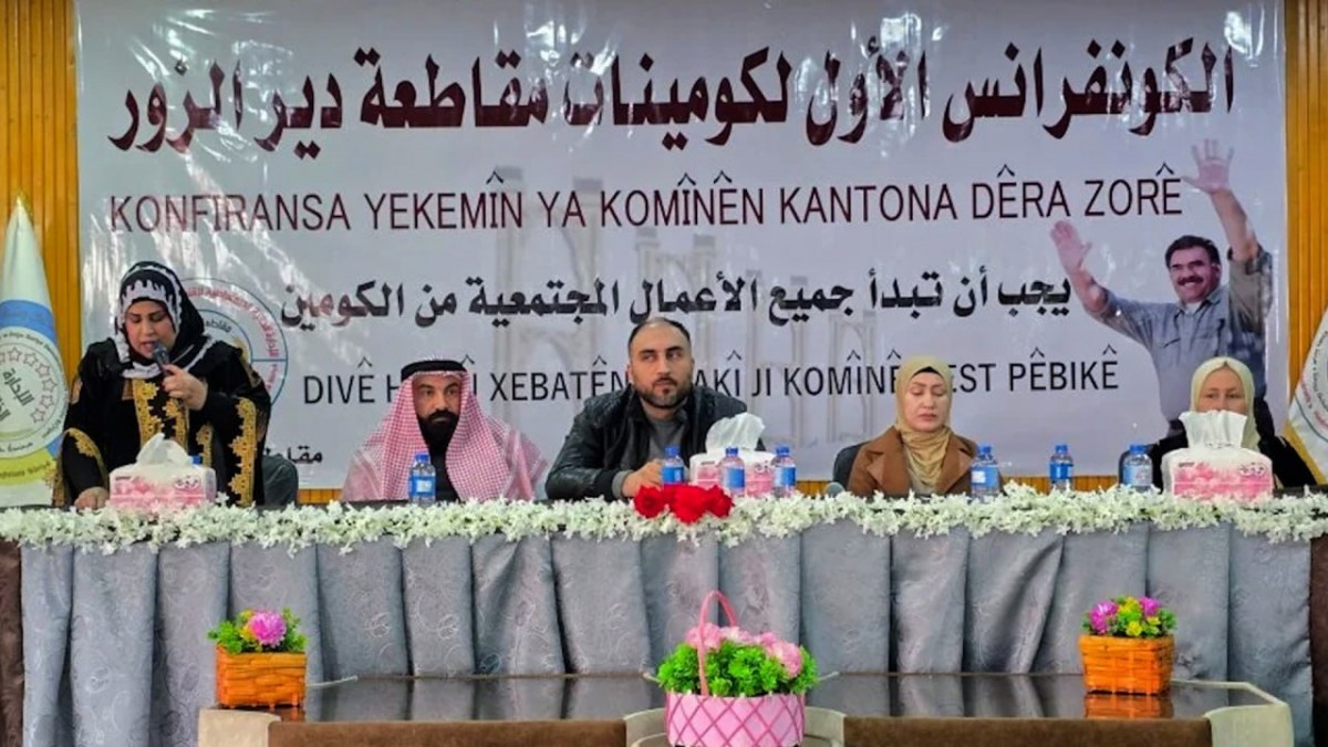 Kuzey ve Doğu Suriye Özerk Yönetimi’ne bağlı Dêrazor Kantonu’nda bulunan Meamil Bölgesi Kültür ve Aydınlanma Meclisi salonunda “Tüm toplumsal çalışmalar komünlerden başlamalı” şiarıyla komün konferansı düzenlendi. Konferansa, Kuzey ve Doğu Suriye Özerk Yönetimi Yürütme Meclisi Eşbaşkanları Evîn Siwêd ve Hisên Osman, Demokratik Halk Meclisi üyeleri, Zenûbiya Kadın Meclisi temsilcileri, kanton meclisleri ve komün üyeleri katıldı.