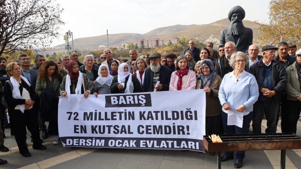 Dêrsim Ocak Evlatları, sürece destek vermek için açıklama gerçekleştirdi. Seyîd Riza Meydanı’nda yapılan açıklamaya Halkların Eşitlik ve Demokrasi Partisi (DEM Parti) Halklar ve İnançlar Komisyonu Eşsözcüsü Yüksel Mutlu, TJA’lı Gültan Kışanak ile çok sayıda kişi katıldı. Açıklamada, “Barış 72 milletin katıldığı en kutsal cemdir” pankartı açıldı.