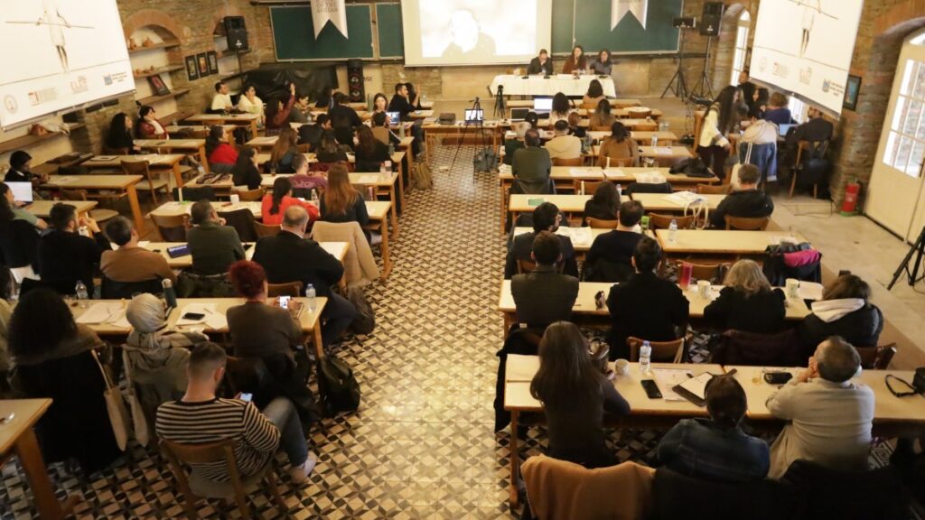 “Barışın toplumsallaşması: Talepten kolektif eylem alanına” oturumunda da Prof. Dr. Füsun Üstel ve Halkların Eşitlik ve Demokrasi Partisi (DEM Parti) İstanbul Milletvekili ve İmralı Heyeti üyesi Cengiz Çiçek söz aldı. Oturumda ilk olarak konuşan Füsun Üstel, kültürel haklar üzerine konuştu. Kültürel hakların barışın toplumsallaşmasındaki rolüne dikkat çeken Füsun Üstel, “AKP hükümeti son 10 yılda ‘milli ve yerli kültür’ talebiyle halkın karşısına geldi. AKP hem siyasi otoritesini güçlendirmek hem de toplumda konsensüs oluşturmak için bu talebi ortaya attı. Bu yerli ve milli kültürü inşa etti mi edebilecek mi? sorusu soruldu. AKP inşa ederek değil yıkarak bir süreci yönetmeye çalışıyor. Kültür ve sanat alanındaki hak ihlalleri genelde kayıt altına alınmıyor. Çok az sayıda kurum ve kuruluş bu hak ihlallerini tespit etmeye çalışıyor. Kürdistan’a baktığımız zaman daha vahim bir tablo var. Düğünlerde veya sokaklarda halay çekmek ya da Kürtçe şarkı söylemek gerekçesiyle insanlar örgüt üyeliği suçlamasıyla tutuklanıyor. Yani tüm alanlarda kültür sanat güvenlikçi politikalarla kıskaç altında” şeklinde konuştu.