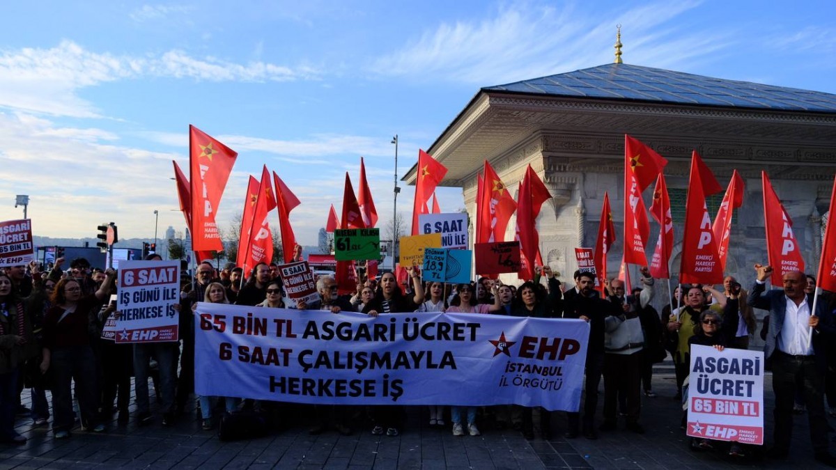 Emekçi Hareket Partisi (EHP), asgari ücret ve çalışma saatlerine ilişkin İstanbul Üsküdar Meydanı ve İzmir’de Kıbrıs Şehitleri Caddesi’nde il örgütleriyle basın açıklaması gerçekleştirdi. Çok sayıda kişinin katılım sağladığı açıklamada, “65 Bin TL Asgari Ücret, 6 Saat Çalışmayla Herkese İş” pankartı taşınırken, “6 saat iş günü ile herkese iş”, “Asgari ücret 65 bin TL” dövizleri taşındı.