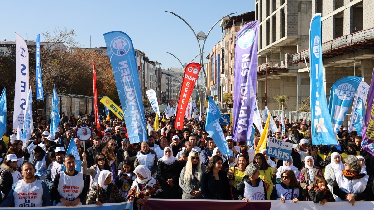 Kamu Ekmekçileri Sendikaları Konfederasyonu (KESK) “Halk için bütçe ve demokratik Türkiye” şiarıyla binlerin katılımıyla Wan’da bölge mitingi gerçekleştirdi. Musa Anter Parkı’nda gerçekleşen mitinge Kürdistan kentlerinden sendika üyeleri, KESK Eş Genel Başkanı Ahmet Karagöz, DEM Parti Mêrdîn Milletvekili Beritan Güneş Altın, belediye eşbaşkanlarının da katıldığı miting alanına “Barıştan yana bir bütçe, cinsiyet eşitliğine duyarlı bütçe, sermaye değil halka bütçe, savaşa değil emekçiye bütçe”, “Ji bo gel budce”, “Hunê biçin em ê bimînin” yazılı pankart taşındı.