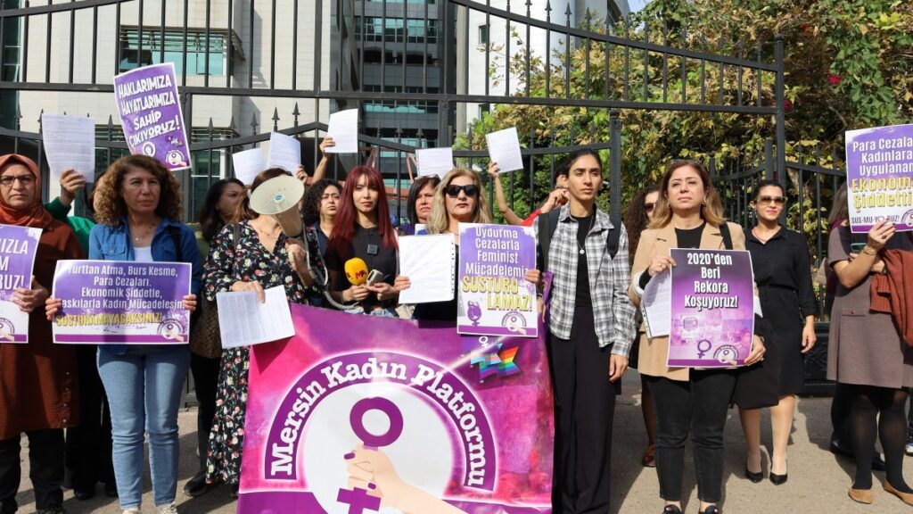 Mersin’de 16 Eylül 2025’te kentte düzenlenen bir eyleme katıldıkları iddiasıyla en az 17 kadına, “Kabahatler Kanunu’nu” gerekçesiyle idari para cezası kesildi. Ancak, olduğu iddia edilen eylem ise kentte hiç düzenlenmedi. Ceza kesilenlerden biri de o dönemde tutuklu bulunan Akdeniz Belediye Eşbaşkanı Nuriye Aslan. Yapılmamış eyleme katılmaktan kadınlara para cezası kesilmesine karşı kadınlar Mersin Adliyesine giderek, Mersin Sulh Ceza Mahkemesine itirazda bulundu. Ceza kesilenlerin avukatlarından Ezgi Özkan, verilen ceza “kadınlara yönelik bir baskı ve gözdağıdır” dedi.