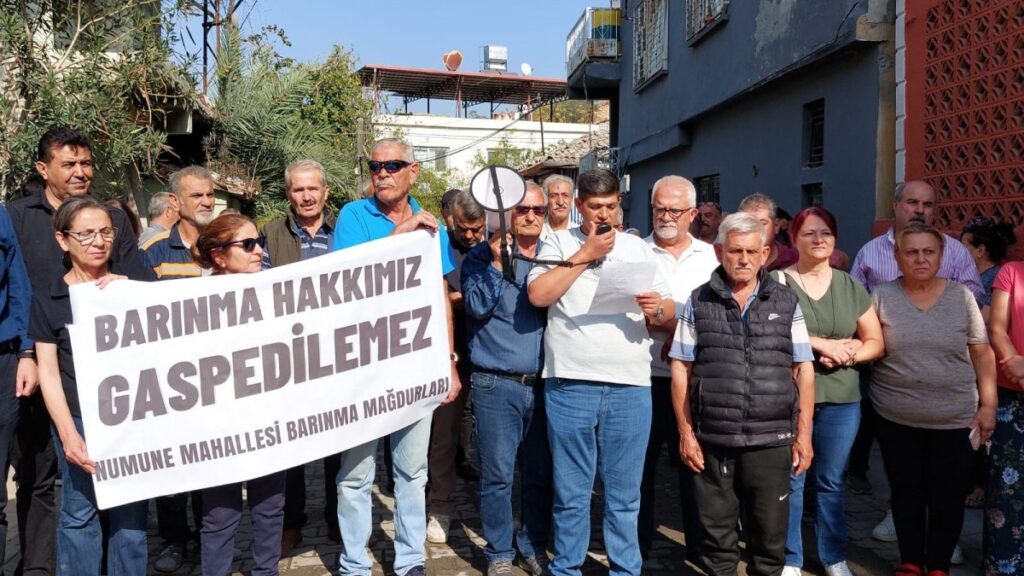 Hatay’ın İskenderun ilçesinde bulunan Numune Mahallesi sakinleri, “heyelan riski” gerekçesiyle mahallenin boşaltılmak istenmesine tepki gösterdi. Mahalle halkı, barınma hakkının ihlal edildiğini belirterek yetkililere seslendi. Eyleme kentteki siyasi parti ve sivil toplum örgütü temsilcileri de destek verdi. Numune Mahallesi Barınma Mağdurları Platformu adına basın metnini Ömer Sıvacı okudu.