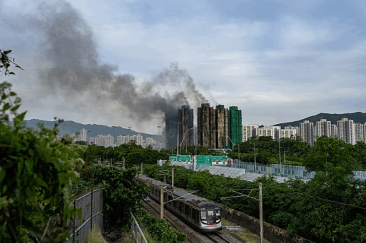 Hong Kong’un anakara sınırına yakın bir kuzey banliyösü olan Tai Po bölgesinde binlerce kişinin yaşadığı sekiz gökdelenden oluşan Wang Fuk Court kompleksindeki bazı pencerelerden yoğun duman çıkarken, ellerinde fenerler bulunan kurtarma ekipleri kömürleşmiş kulelerde daire daire dolaşıyordu.
