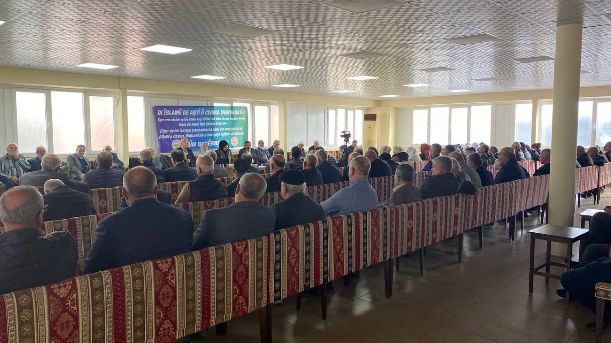 Ardından konuşan Abdullah Sağır, din alimleri olarak barış sürecine destek sağlamak istediklerini dile getirerek, “Allah bu barış sürecinde Kürtleri ileri taşısın. Adalet olmazsa, barışta olmaz. Peki Adalet nedir? Herkesin hakkı teslim edilmelidir. Bu dünyada sadece biz yokuz. Diğer dünyada yanımızda diğer yaratılanlarda olacaktır.  Adalet olmazsa hem bizler hem de diğer yaratılanlar birçok sorun yaşarız. Ekolojik sistem bozulursa insanlıkta büyük bir zarar görür. Dünya da bu konuda büyük bir kriz yaşanmaktadır. Adalet, başta insanların arasında oluşturulması lazım. Kadın ve erkek arasında adalet sağlanmalıdır. Ev içinde adalet sağlanmalıdır. Eğer ki ev içerisinde adalet sağlanırsa orada huzur olur.  Öncelikle adaleti kendi evimizde sağlayalım. Kız erkek çocuklarımıza fark koymamalıyız. Bu süreç de irademiz ve sahip çıkmamızla olumlu sonuçlanacaktır. Sadece teori ile kalmaması lazım” diye belirtti.