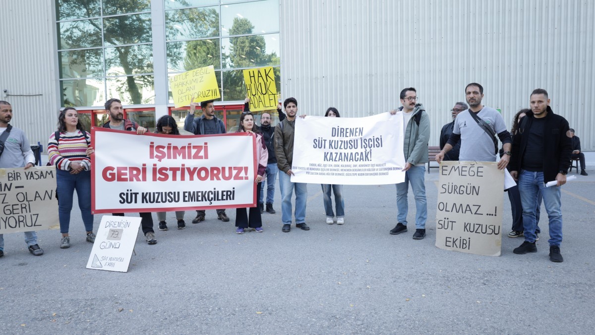 İzmir Büyükşehir Belediyesi’nde (İzBB) “Süt Kuzusu Projesi” kapsamında çalışırken işten çıkartılan işçiler, belediyenin Kültürpark içerisinde bulunan 3 Nolu Holu önünde açıklama gerçekleştirdi. Açıklamada “İşimizi geri istiyoruz” ve “Direnen Süt Kuzusu işçileri kazanacak” pankartları açılırken “Lütuf değil hakkımız olanı istiyoruz” ve “İnsanca bir yaşam için hakkımız olanı istiyoruz” dövizleri taşındı. Sık sık “Direnen işçi asla pes etmez” ve “Aş ekmek yoksa direniş var” sloganları atıldı.