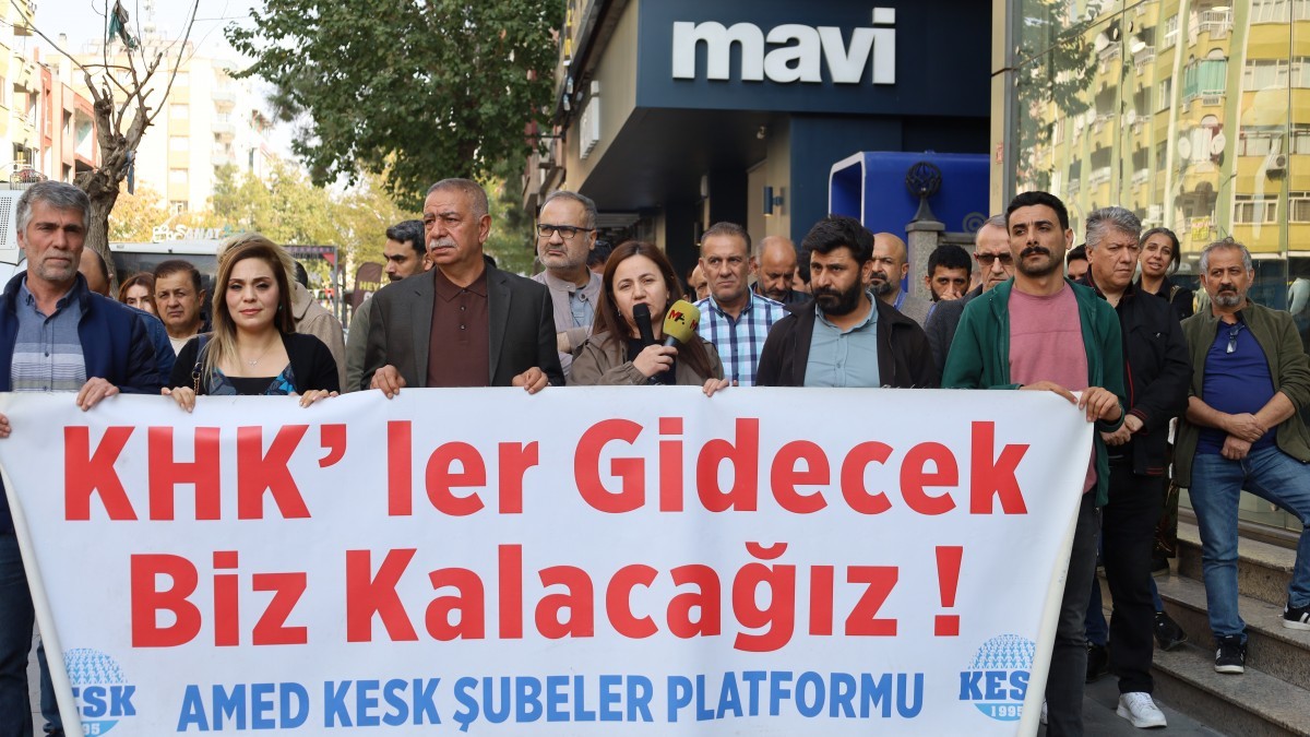 Kamu Emekçileri Sendikaları Konfederasyonu (KESK) Amed Şubeler Platformu “KHK’ler gidecek biz kalacağız” eyleminin 146’ncısını Yenişehir ilçesi Ofis Semti’nde bulunan AZC Plaza önünde gerçekleştirdi. Eylemde, “KHK’ler gidecek biz kalacağız” pankartı açılarak “KHK’ler gidecek biz kalacağız” sloganları atıldı. Açıklama metnini Yapı, Altyapı, Bayındırlık ve Tapu Kadastro Kamu Emekçileri Sendikası (Yapı-Yol Sen) Şube Başkanı Murat Demir okudu.