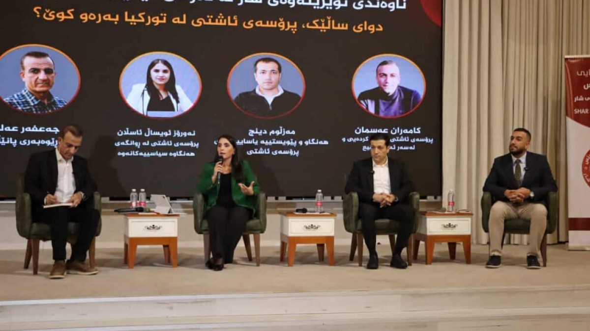 Federe Kürdistan Bölgesi’nin Silemanî kentinde Ramada Salonu’nda Sharpress Medya Ajansı’na bağlı Kent Araştırmaları Merkezi tarafından düzenlenen “Bir yılın ardından Türkiye’deki barış süreci nereye doğru gidiyor” başlıklı forum düzenleniyor.