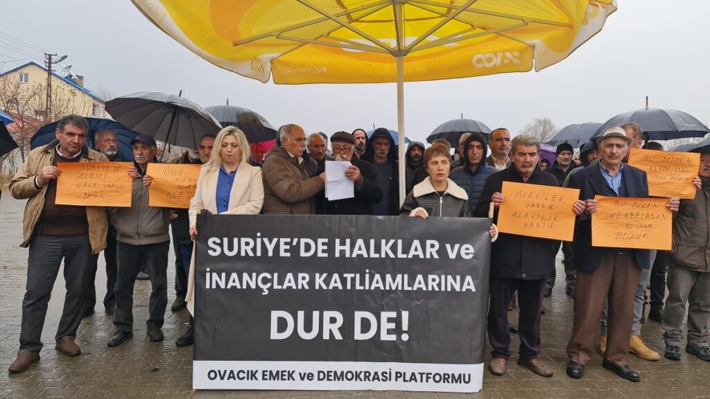 DÊRSIM – Suriye’deki Alevi katliamına tepki gösteren Pulur Emek ve Demokrasi Platformu üyeleri “Bugün Suriye’de Alevilere ve kadim halklara yeni bir Kerbela yaşatılıyor” dedi.