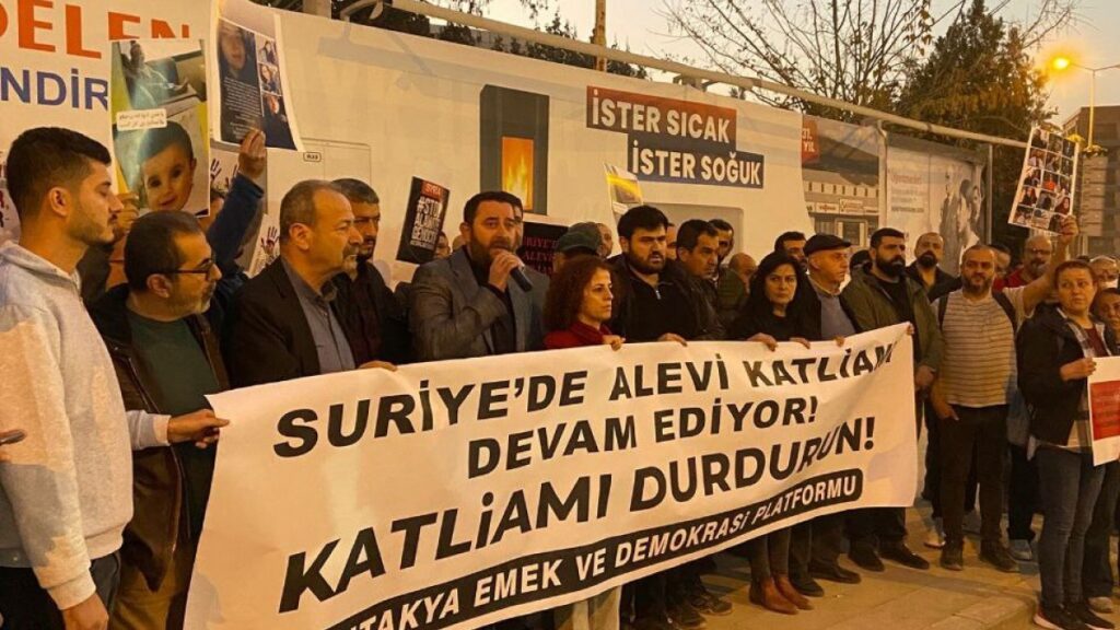 Antakya Emek ve Demokrasi Platformu, Suriye’nin Humus kentinde Alevi halkına yönelik gerçekleşen saldırılarını Necmi Asfuroğlu Anadolu Lisesi önünde yaptıkları basın açıklaması ile protesto etti. Açıklamayı platform üyesi Mehmet Çelik okudu. Çelik, HTŞ’ye bağlı güvenlik birimleri ile kimi Arap aşiret güçlerinin 23 Kasım’da Humus’taki Alevi yurttaşlara yönelik araç yakma, işkence, zorla ev boşaltma ve araçla ezerek katletme gibi ağır saldırılar gerçekleştirdiğini belirtti. Çelik, saldırıların, aylardır sürdürülen nefret kampanyalarının ve inanç temelli imha girişimlerinin devamı olduğuna dikkat çekti.