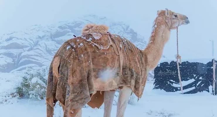 Suudi Arabistan kanalı Al Arabiya karla kaplı manzarayı ‘tarihi’ olarak niteledi ve ‘bu manzaranın yaklaşık 30 yıldır görülmediği’ yönündeki söylentilere atıf yaptı.