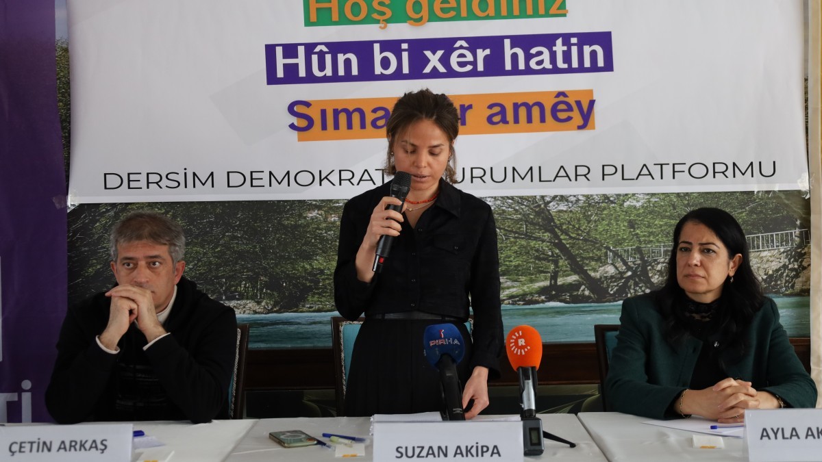 Demokratik Kurumlar Platformu, Dêrsim’de Barış ve Demokratik Toplum Buluşması düzenledi. Bir otelde gerçekleşen buluşmaya, siyasi partilerin ve sivil toplum örgütlerinin temsilcileri ve çok sayıda yurttaş katıldı. Buluşmada sık sık “Biji Serok Apo”, “Şehîd namirin” sloganları atıldı. Buluşmaya İmralı Cezaevi’nde 9 ay kalan ve kısa bir süre önce tahliye edilen Çetin Arkaş, Özgür Kadın Hareketi’nden (Tevgera Jinên Azad-TJA) Ayla Akat Ata ve Asrın Hukuk Bürosu üyesi Suzan Akipa konuşmacı olarak katıldı.
