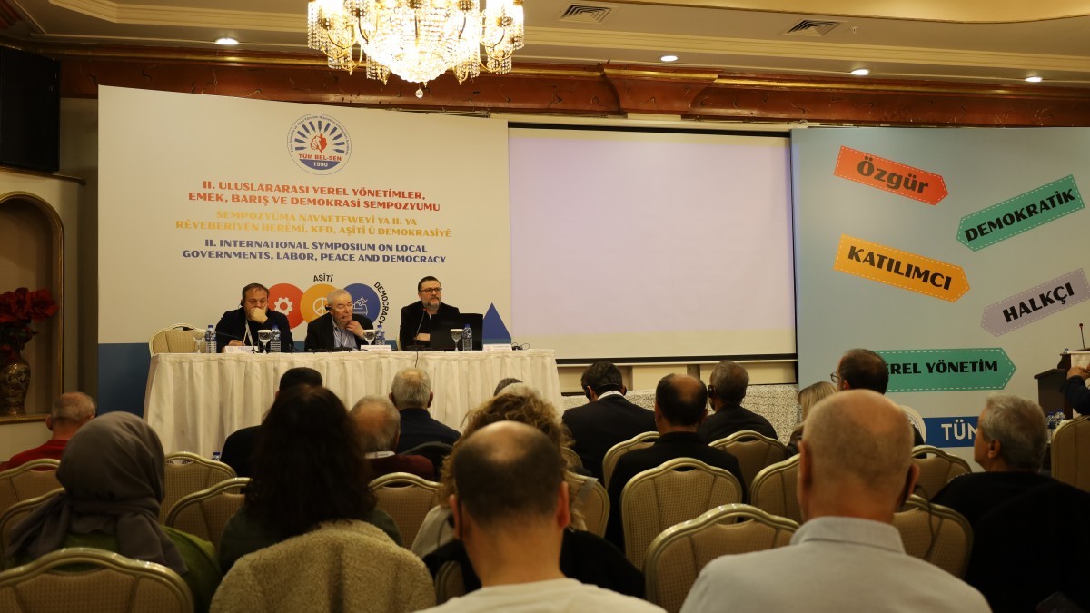 Tüm Belediye ve Yerel Yönetim Hizmetleri Emekçileri Sendikası (TÜM BEL-SEN) 2’nci Uluslararası Yerel Yönetimler, Emek ve Demokrasi Sempozyumu’nu düzenliyor. Hotel İçkale’de yapılan sempozyuma uluslararası alanda yerel yönetim ve yerel demokrasi çalışmaları yürüten isimlerin yanı sıra, belediye eşbaşkanları, akademisyenler, yerel demokrasi ve yerel yönetimler alanında çalışma yürüten düşünürler, yerine kayyum atanan belediye başkanları, aydın, yazar ve gazetecilerin katıldı.