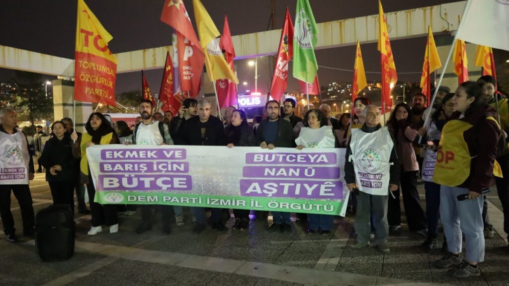 Halkların Eşitlik ve Demokrasi Partisi (DEM Parti) İzmir İl Örgütü, Türkiye İşçi Partisi (TİP) İzmir İl Örgütü, Emekçi Hareket Partisi (EHP), Toplumsal Özgürlük Partisi (TÖP) İzmir İl Örgütü ve Sosyalist Meclisler Federasyonu (SMF), Konak Vapur İskelesi karşısında “Emek, barış, adalet ve özgürlük için birlikte mücadeleye” konulu basın açıklaması gerçekleştirdi. “Ekmek ve barış için bütçe” pankartının açıldığı açıklamada sık sık “Baskılar bizi yıldıramaz”, “Asgari değil insanca ücret”, “İnsanca bir yaşam istiyoruz” sloganları atıldı. DEM Parti İzmir Milletvekili Burcugül Çubuk’un yanı sıra çok sayıda yurttaş katıldı.