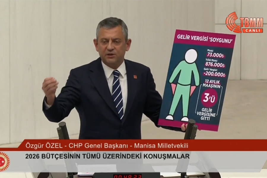 TBMM Genel Kurulu 2026 Yılı Bütçe Kanunu Teklifi görüşmelerinde kürsüden milletvekillerine hitap eden CHP Genel Başkanı Özgür Özel’in konuşmasından satırbaşları şöyle: