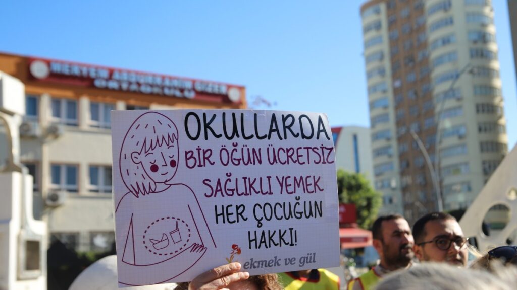 Açıklamayı yapan Ekmek ve Gül Derneği üyesi bakanlığın ücretsiz yemeği kaldırmasının çocukların eğitim hakkını, sağlıklı gelişimini ve yaşam güvencesini tehdit ettiğini ifade ederek, “Çocukların yoksulluk, güvencesizlik ve açlıkla mücadele ettiği bu dönemde okullarda bir öğün ücretsiz, dengeli ve sağlıklı yemek her çocuğun hakkıdır. Bu dava kabul edilmeli; sosyal devletin anayasal görevi olan çocukların beslenme hakkı güvence altına alınmalıdır” dedi.