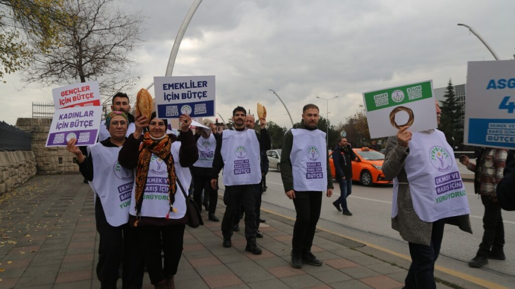 Halkların Eşitlik ve Demokrasi Partisi’nin (DEM Parti) 12 Aralık’ta Türkiye ve Kürdistan’dan 4 bir koldan Ankara’ya başlattığı yürüyüş, Meclis Kapısı’nda yapılan açıklamayla son buldu. Meclis Genel Kurulu’nda 2026 yılı bütçe görüşmelerinin başlamasıyla eş zamanlı olarak “Ekmek ve Barış İçin Bütçe” şiarıyla başlatılan yürüyüşe, Amed, Çukurova, Ege ve Marmara kollarından birçok yurttaş katıldı.