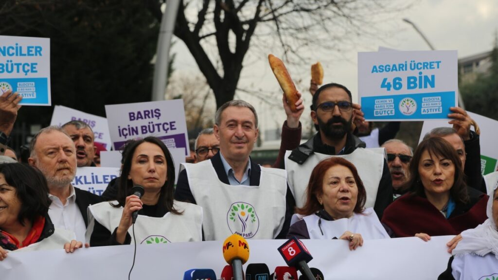 Bugün barış için bütçe derken savaşa, özel harp yönetimine, güvenlikçi politikalara ayrılan bütçenin son bulmasını istiyoruz. 100 yıllık bir mesele olan ve son 50 senesi savaş ve çatışmalarda geçen Kürt sorununun barışçıl ve demokratik yöntemlerle çözülmesi demek silaha ve savaşa para ayrılmaması, bütçeden pay ayrılmaması demektir. Ama ne yazık ki 2026 bütçesinde 1 yılı aşkındır Barış ve Demokratik Toplum Süreci’nden bahsederken yine mevcut iktidar silaha ciddi anlamda pay ayırmıştır. Hatta geçmiş senelere göre daha fazla bütçe ayırmıştır. Bunu kabul etmek mümkün değildir. Buradan bir kez daha haykırıyoruz. Savaşa değil, halka bütçe. Savaşa değil, emekçiye bütçe.