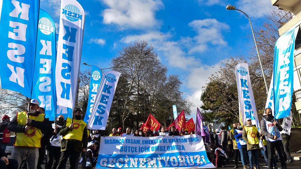 Açıklamada, 23 yıldır iktidar tarafından atanan bürokratların en az 30 bin TL zamla ödüllendirildiği, buna karşılık 4 milyon kamu emekçisi ile 2,5 milyon emeklinin ise cezalandırıldığı vurgulanarak, “Emekli maaşı açlık sınırının altında, kamu emekçisi maaşı yoksulluk sınırının yarısına düştü. TÜİK’in sahte verilerine göre bile son beş ayda yüzde 5,9 enflasyon farkı oluştu, 50 bin TL maaş alan bir emekçinin reel geliri 47 bin TL’ye geriledi. Konut enflasyonun yüzde 49,92, eğitim enflasyonun ise yüzde 66,17 olduğu ülkede milyonlarca emekçi, temel ihtiyaçlarını karşılayamaz hale geldi. Mevcut tablo, hükümet, Hakem Kurulu, yandaş konfederasyon üçgenindeki danışıklı dövüşün sonucu ortaya çıktı” ifadeleri kullanıldı.
