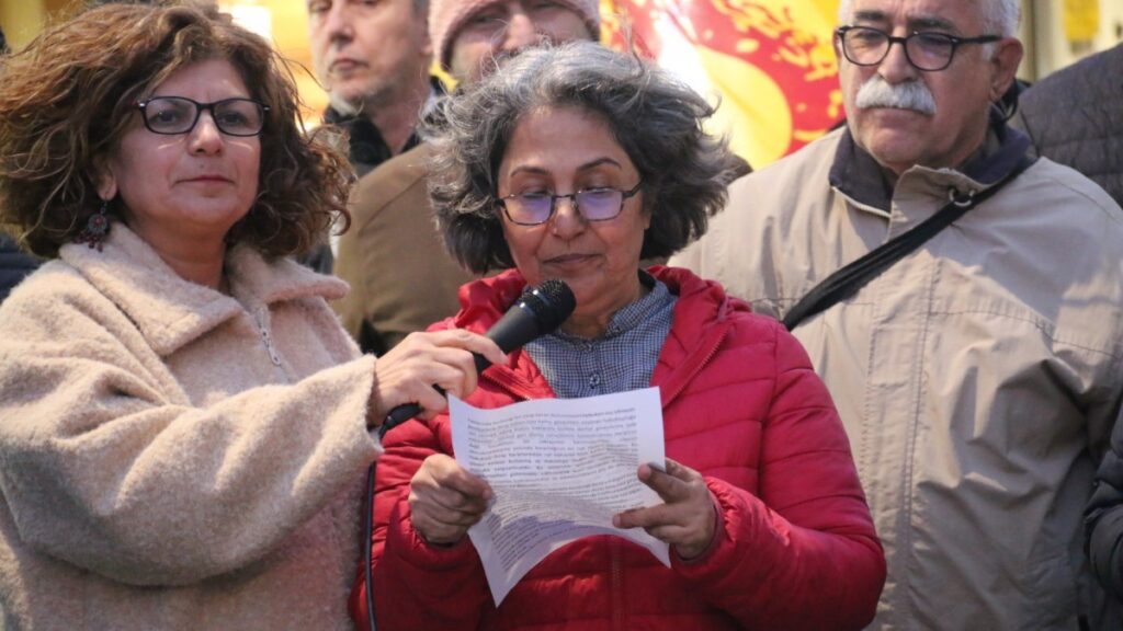 Basın açıklamasını yapan Eğitim ve Bilim Emekçileri Sendikası (Eğitim Sen) İzmir 2 No’lu Şube Başkanı Zeliha Danyeli, Mereş ve yaşanan tüm katliamlarda yitirilen canları saygıyla andıklarını ve insanlığa karşı işlenen tüm katliamları lanetlediklerini belirtti. Arkadaşlarının yaşanan her türlü katliama karşı oldukları ve barış istedikleri için işlerinden ihraç edildiğini söyleyen Zeliha Danyeli, “OHAL sürecinde ihraç edilen kamu emekçileri çok ciddi zorluklarla karşı karşıya kalmıştır. KHK ihraçları ile sadece işleri ellerinden alınmamış uzun uğraşlar sonucunda kazandıkları mesleklerini yapmaları engellenmiş kendilerinin ve ailelerinin yaşamları adeta kabusa dönüştürülerek açlığa mahkum edilmiştir. Son dönemlerde sınırlı sayıda barış akademisyenleri dışında geri dönüşler adeta durma noktasına gelmiştir. Hukuki niteliği olmayan OHAL komisyonunun, Türkiye Cumhuriyeti’nin anayasal kurumları olan mahkemeleri yok sayarak karar vermesi açık bir anayasa ihlalidir ve suçtur. Göreve geri dönüş süreçlerinin hızlandırılması ayrıştırıcı değil kucaklayıcı bir yaklaşımın benimsenmesi, ülkenin demokratikleşme yolunda kararlılığının en net ifadesi olacaktır. Bu hukuksuz ihraç kararlarından rol oynayan tüm kamu görevleri ise görevi kötüye kullanma ve haksızlığa neden olması suçlarından mutlaka yargılanmalıdır. Bu adımların atılması sadece bireysel mağduriyetleri gidermekle kalmayacak aynı zamanda Türkiye’nin geçmişte yapılan hukuksuzluklar ve adaletsizliklerin geç de olsa telafi edilmesi anlamına gelecektir” dedi.