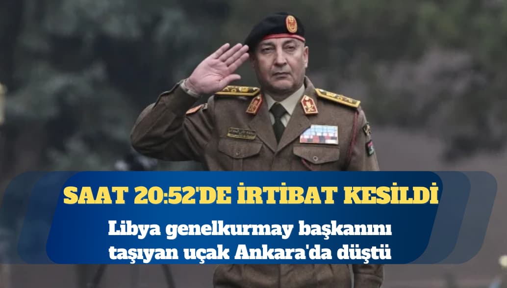 Ankara Esenboğa Havalimanı’ndan kalkan Libya Genelkurmay Başkanı Orgeneral Muhammed Ali Al-Haddad’ın uçağı Haymana yakınlarında düştü.